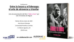 Conferencia Entre la locura y el liderazgo: el arte de atreverse y triunfar. Acto de presentación del libro «Líder o loco» por Iván Fernández de Miguel ICADE Asociación Profesional, en colaboración con AUDEMAC (Asociación de alumnos del Campus senior de Comillas), tienen el placer